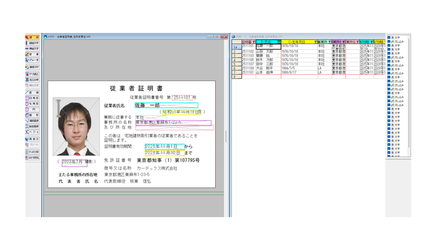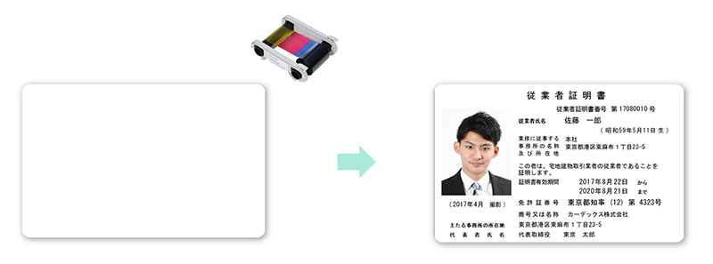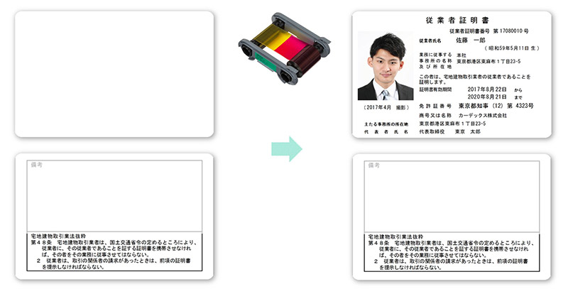 裏面にスクリーンパネルを配置した印刷済みのプレ印刷カードを使えば、裏面の印刷は不要となり、手書き可能な備考欄を設けることができます。さらに、ハーフパネルカラーリボンで表面の写真や名前など可変部分を印刷することで、カード一枚あたりの印刷コストを抑えつつ、印刷時間も短縮できます。