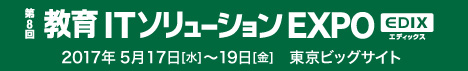 第8回教育ITソリューションEXPO ご来展ありがとうございました! 2017年5月17日(水)から19日(金)の3日間、 東京ビッグサイトにて開催されます「第8回教育ITソリューションEXPO」に出展いたしました。 弊社ブースへお越しいただきありがとうございました。