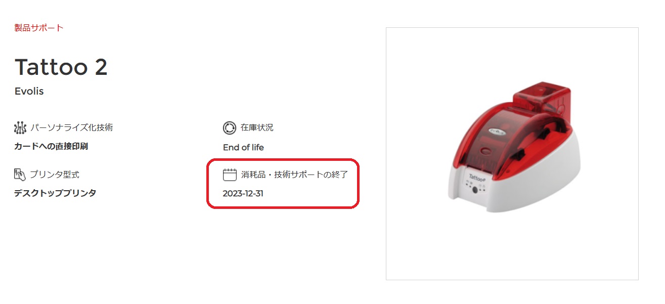 2013年に販売を終了しましたTattoo2のインクリボンの販売が2023年12月31日をもって終了となります。